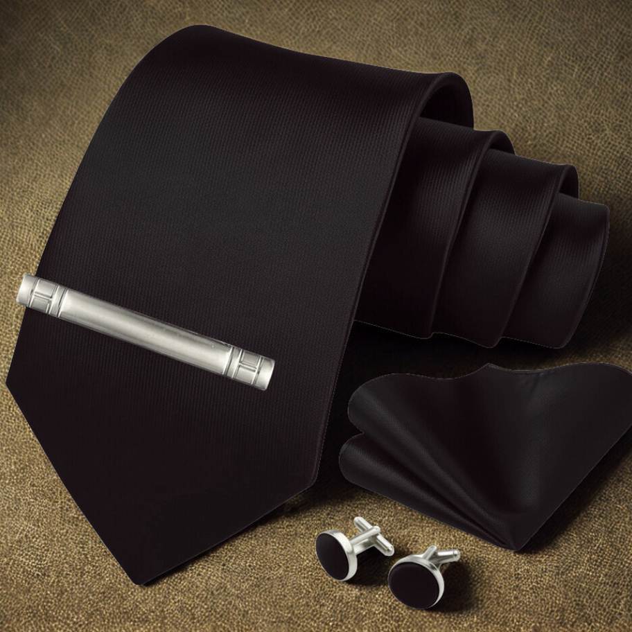 Tie, Tie bar, Pocket Square and Cufflinks all presented in quality casing.
